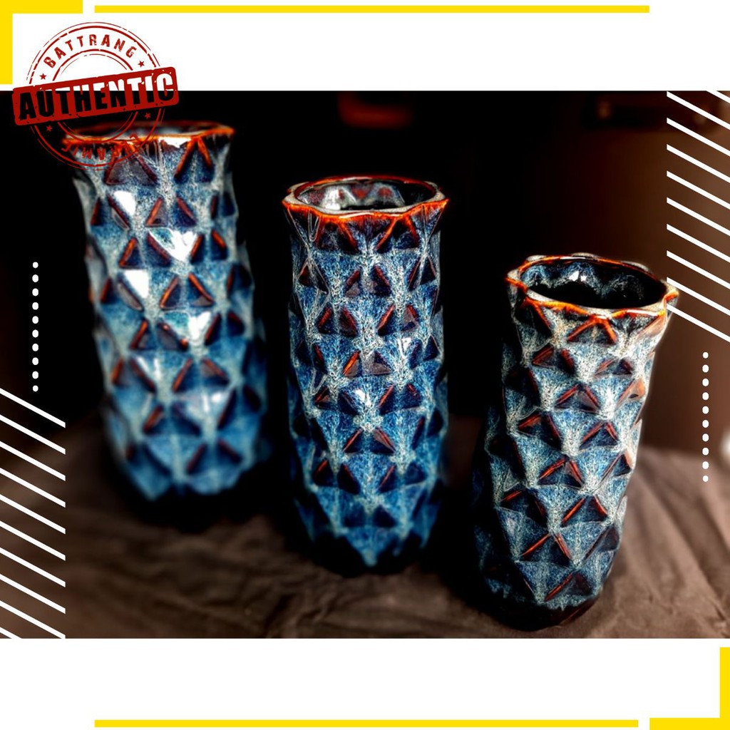 Hôm nay xưởng gốm sứ gia oanh authentic bat trang xin gửi tới quý khách hàng bộ bình trang trí/ cắm hoa họa tiết cờ rô, men xanh hỏa biến,Sản phẩm rất đẹp và đẳng cấp, màu men và chất men, các đường bo viên màu vàng cánh gián tạo nên sản phẩm rất nét và độc đáo,