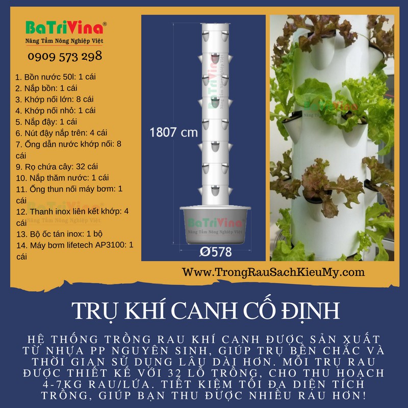 BỘ TRỤ TRỒNG RAU KHÍ CANH CỐ ĐỊNH CAO CẤP
