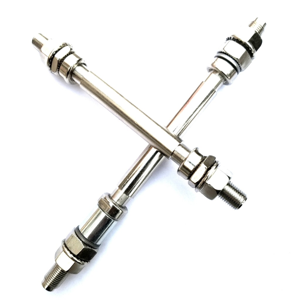 Loại trục đặc: Bao gồm trục cho moay ơ trước và sau, sử dụng bạc đạn có đường kính trong 10mm, tương ứng là vòng bi 6000 và 6200.Trục trước: dài 140mm