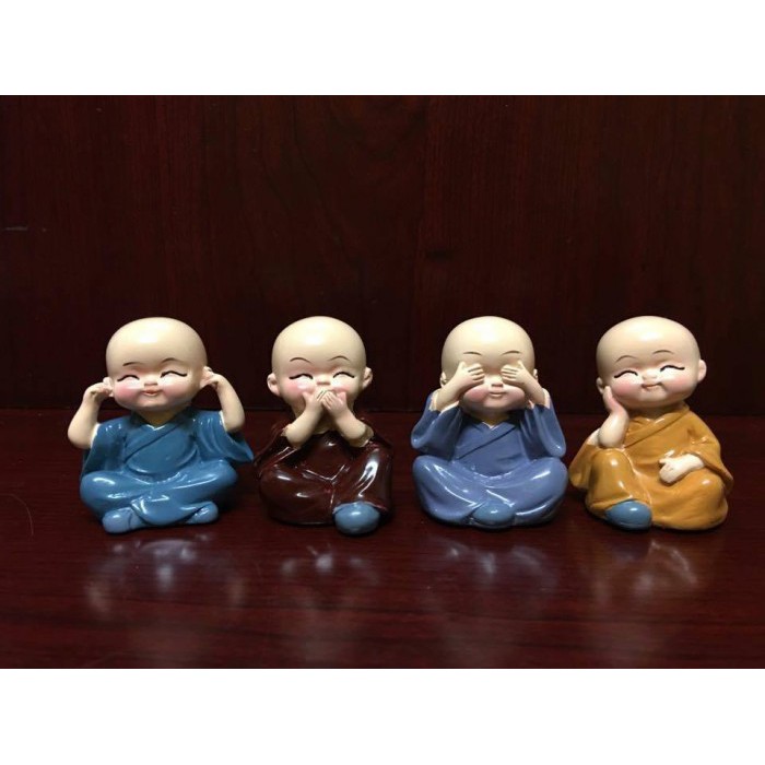 Bộ tượng 4 chú tiểu nhỏ nhắn xinh xắn và rất ý nghĩa để để bàn làm việc, để xe ô tô, trang trí phòng khách, làm quà tặng,...Xuất xứ của bộ tượng 4 Không là 4 tượng bịt mắt, bịt miệng, bịt tai, bịt thân có từ 400 năm trước ở Nhật Bản tại chùa Toshogu, Nikko.