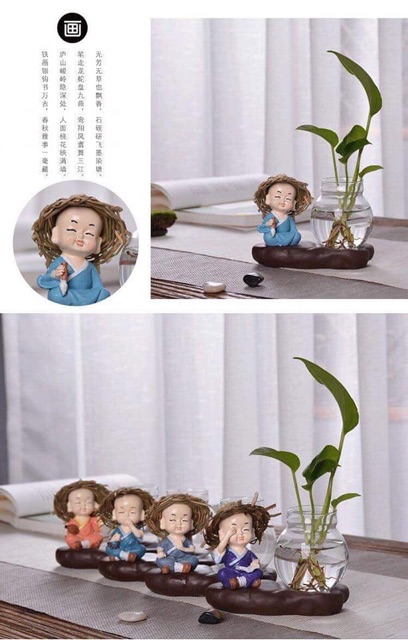 💕Bộ tượng Tứ Phật gồm 4 tượng Phật nhỏ vui vẻ, an lạc cùng kết hợp với bình thủy tinh để bạn có thể cắm hoa, chồng cây xanh tiểu cảnh trang trí mang lại nhiều ý nghĩa đó là điều tiết khí, xua tan đi những điều không may mắn để mang lại niềm vui trong cuộc sống hàng ngày. Sản phẩm thiết kế nhỏ nhắn, xinh xắn và rất ý nghĩa dùng để bàn làm việc, để xe ô tô, trang trí phòng khách, làm quà tặng,.. đồng thời cũng nhắc nhở để ta không phạm phải những sai lầm.