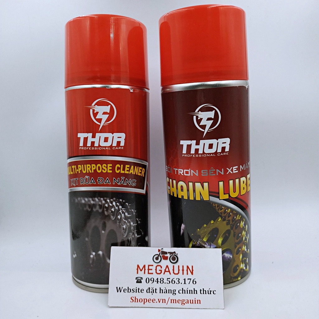 - Thor Multi-purpose Cleaner (400ml): xịt rửa xích, đánh bay chất bẩn, dầu mỡ, kết hợp cùng bàn chải cọ 3D