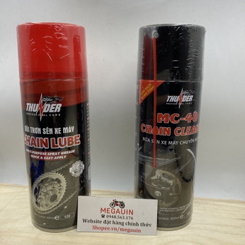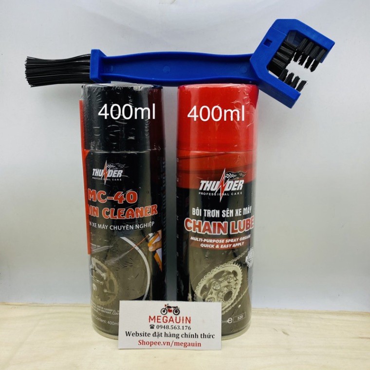 - Thunder Chain Cleaner MC-40 (400ml): xịt rửa xích, đánh bay chất bẩn, dầu mỡ, kết hợp cùng bàn chải cọ 3D