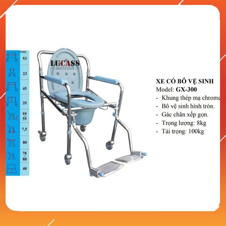 Ghế bô vệ sinh, xe đẩy có bô, ghế tắm cao cấp chắc chắn, CÓ BÁNH XE, CÓ ĐỂ CHÂN, gấp gọn, cho người già, người ốm. Hàng chính hãng vật liệu tốt, rất chắc chắn.Mã: GX 300