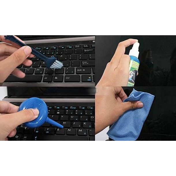 Để đạt được hiệu quả làm sạch tốt nhất, đầu tiên bạn phải tắt nguồn các thiết bị và dùng chổi quét một lượt những nơi cần vệ sinh. Sau đó, xịt dung dịch tẩy rửa lên bề mặt cần làm sạch rồi dùng tấm lau chuyên dụng lau khô lớp dung dịch này. Sau đó, tiếp tục lau lại một lần nữa bằng mặt vải khô của tấm lau. Với bộ 6 món vệ sinh laptop, thiết bị điện tử của bạn sẽ sạch bóng như mới trong chớp mắt.