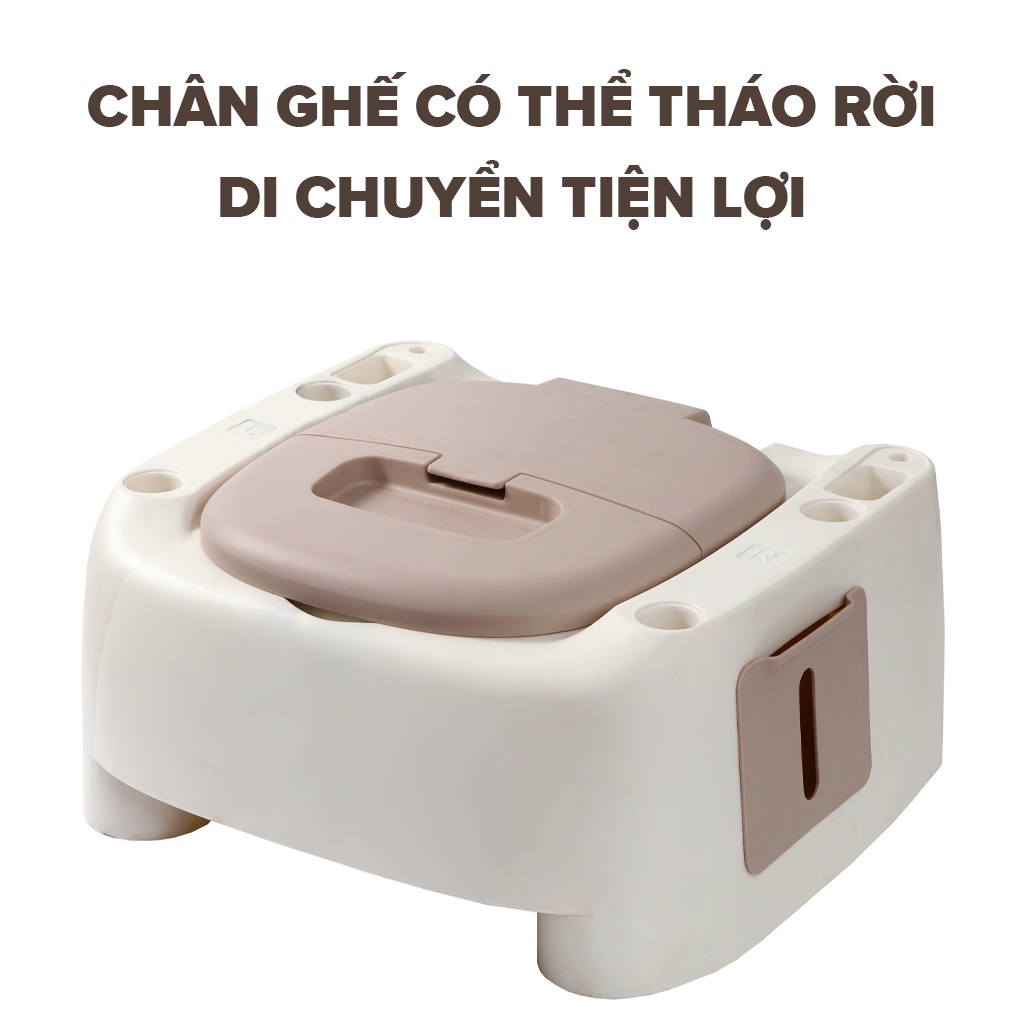 Bô vệ sinh người già, bà bầu, ghế vệ sinh có tựa di động kê sát giường, phòng ngủ chịu lực 960KG có thể nâng hạ 2 nấc