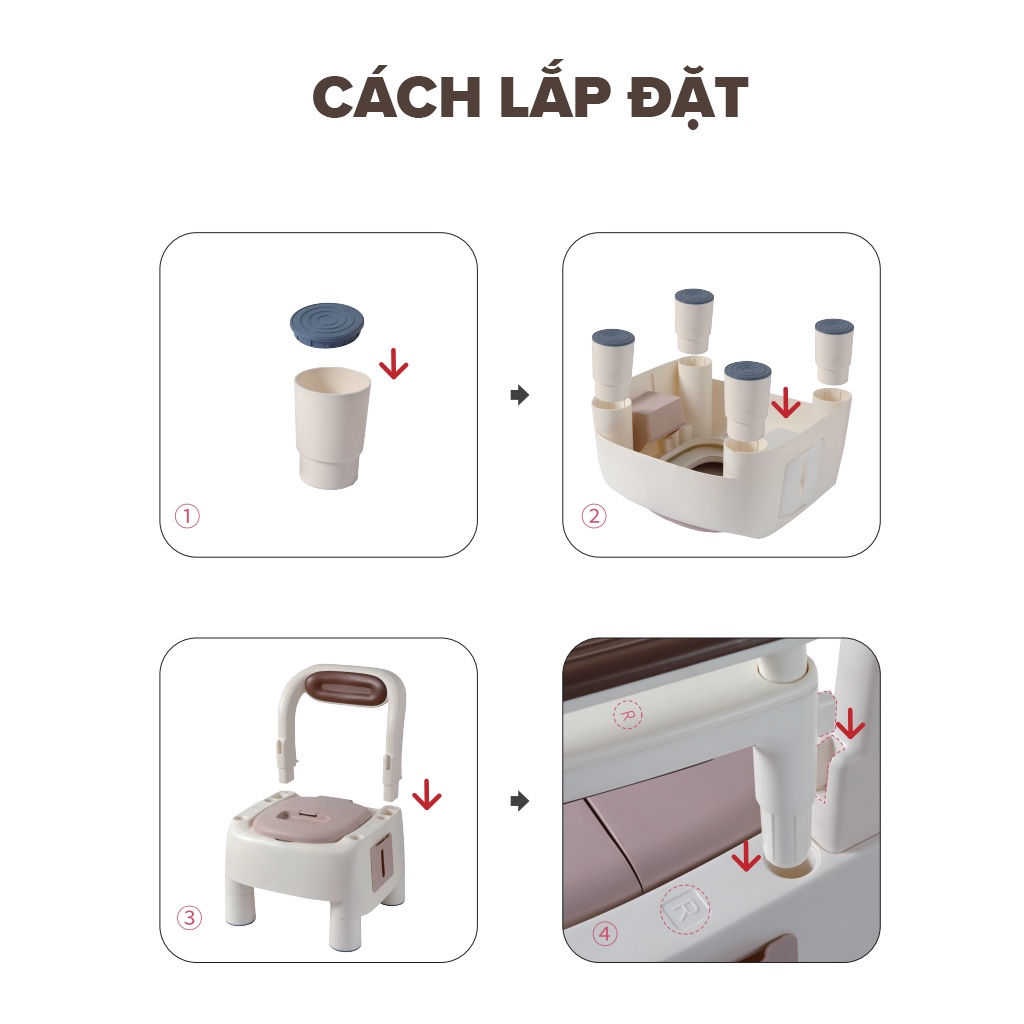 Giới thiệu Bô vệ sinh người già, bà bầu, ghế vệ sinh có tựa di động kê sát giường, phòng ngủ chịu lực 960KG có thể nâng hạ 2 nấc