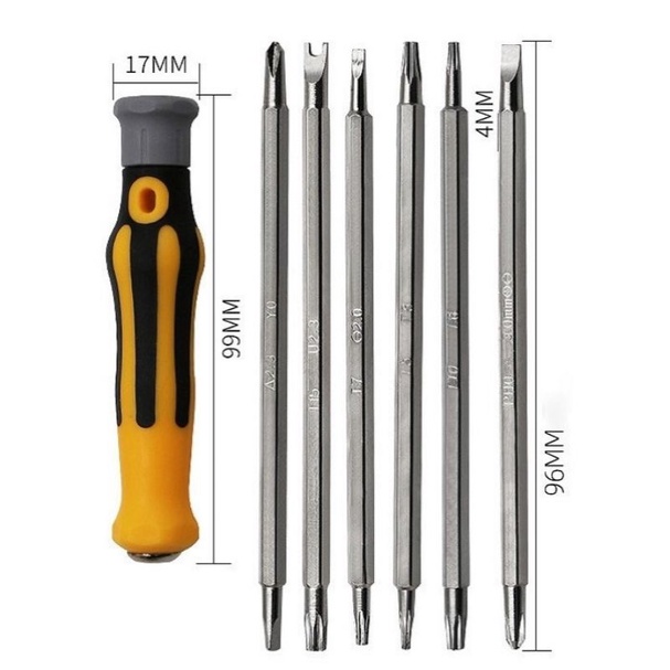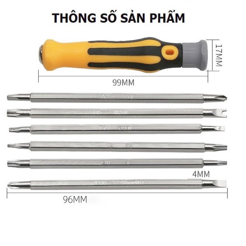 Loại nhỏ ví da có 23 món. loại 7 món tùy theo nhu cầu sử dụng của khách hàng nhé.Nhiều loại đầu khác nhau dùng để mở các loại ốc vít nhỏ khi sửa chữa rất thông dụng trong gia đình.