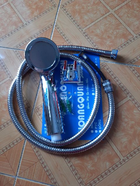 Bộ vòi sen gồm có:- Dây cấp nước 2 lớp cao cấp dài 1,5m: lớp ngoài xoắn Inox sáng bóng, lớp trong dây bố bền chắc theo thời gian