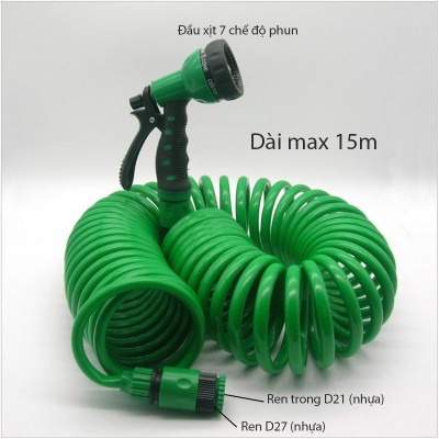 Thiết kế thông minh, nhỏ gọn, dễ lắp đặt và sử dụng; Vòi xịt 7 chế độ phun cho bạn lựa chọn; Dây mềm uốn hình lò xo rất gọn, chiều dài max 15m; Vật liệu nhựa ABS rất bền và an toàn=============================