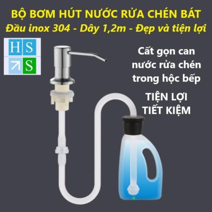BỘ VÒI XỊT NƯỚC RỬA CHÉN Inox 304 gắn vào bồn rửa chén có dây dẫn 120cm tới chai nước rửa chén lớn đặt trong hộc bếp gọn gàng
