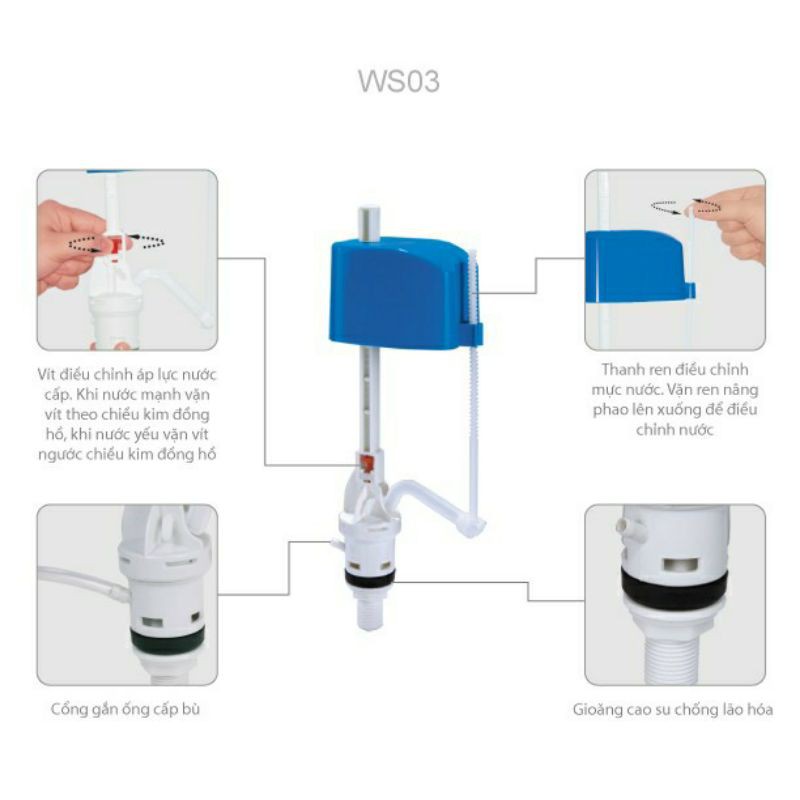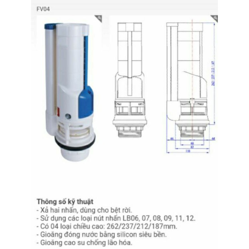Bộ xả thay thế cho các loại bồn cầu của các hãng như Toto, American Standard, Inax, Caesar, ViglaceraChiều cao cọc thoát nước: 21,2cm, 26,2cm