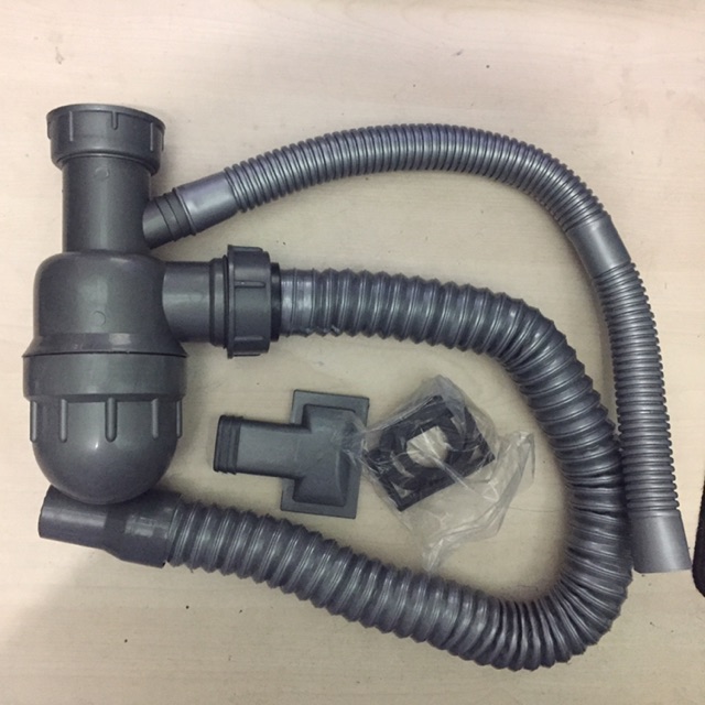 - Ống xi phông ruột gà và ống thông hơi mềm dẻo, có bầu lắng cặn bẩn và chống hôi