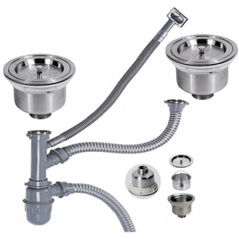 🌟 Bộ sản phẩm gồm: 2 nắp đậy inox, 2 cốc lọc rác, 2 bộ phễu thoát, 1 phễu thoát tràn, 1 bộ ống xả xi phông.