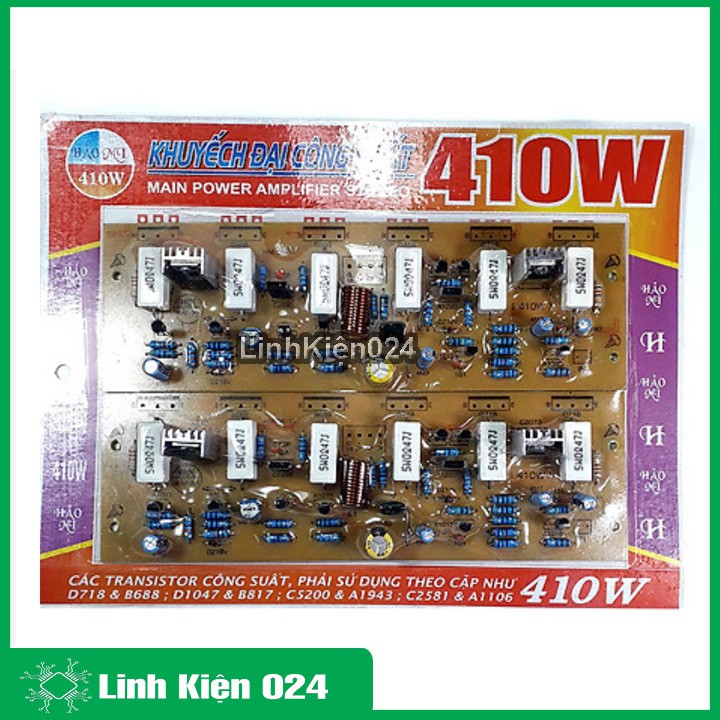 Board Khuyếch Đại Công Suất-Bo Âm Li Công Suất 410W-12 SÒ Chất Lượng CaoMạch ampli khuếch đại công suất chất lượng tốt. Đặc biệt sản phẩm được cung cấp bởi Linh Kiện 024 đã được cân chỉnh và cho chạy với transistor ( D718 - B688)