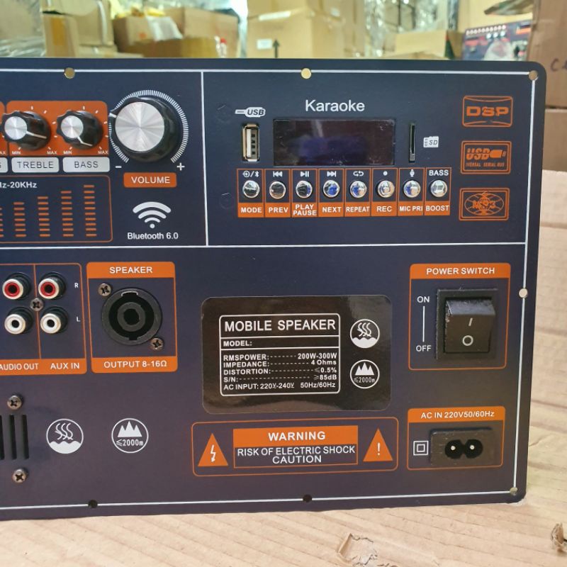 - Mạch loa được tích hợp Bluetooth 5.0 đọc USB, SD memory and MicroSD with the LCD tag display more information, on board but have 2 led signal and alert all, kèm theo các chức năng khác như micrô ưu tiên, các port Guitar, AUX in, AUX out, 2 port micro sub và port acquy phụ thuộc tiện lợi Tích hợp chế độ rất mạnh Acquy cực mạnh cho khả năng không bình thường có dung lượng lớn (20A trở xuống), công suất dùng chung big 63V for ra sound cực mạnh và chắc chắn.