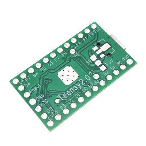 Board thí nghiệm Teensy 2.0 AVR ATmega32u4. Được tích hợp giao tiếp USB trực tiếp trên chip (tốc độ 12Mbit/s). Phần cứng tương đương với Arduino Leonardo (90%). Dùng để mô phỏng các thiết bị ngoại vi máy tính thông qua giao tiếp USB như chuột, bàn phím, loa, cần điều khiển, tay game,…Board thí nghiệm Teensy 2.0 AVR ATmega32u4 có thể được lập trình bằng phần mềm Arduino IDE (cài thêm add-on). Hoặc sử dụng phần mềm của hãng để Upload chương trình.