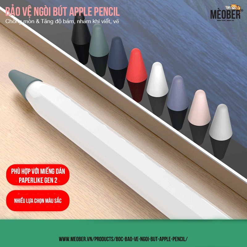 Bọc bảo vệ ngòi bút Apple Pencil thế hệ 1 và 2, chống mòn, chống trượt, silicon cao cấp (8 màu) thế hệ mới với ưu điểm thiết kế đẹp mắt, ôm gọn đầu bút Apple Pencil, giúp tăng tính thẩm mỹ và chống mòn khi các bạn vẽ, viết.Bọc bảo vệ ngòi bút Apple Pencil thế hệ 1 và 2, chống mòn, chống trượt, silicon cao cấp (8 màu) làm từ silicon dẻo với độ đàn hồi cao, tăng ma sát, bám nét vẽ và mềm. Tăng độ nhám khi viết, vẽ, rất thích. Hộp 8 ngòi cho bạn linh hoạt và dễ dàng thay đổi, mang theo (hộp bọc ngòi sang tọng, thuận tiện mang theo).