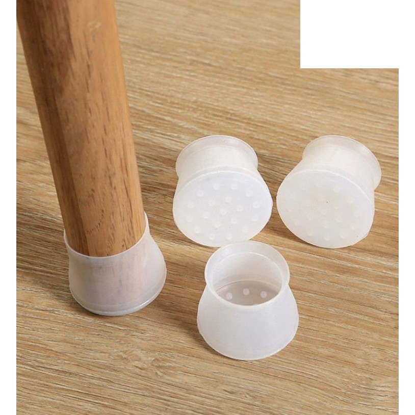 ** Công Dụng: Bảo vệ cả chân bàn ghế và sàn nhà khỏi bị hư hại. Đệm dưới chống trượt, chống trầy xước, chống ồn mà không để lại dấu vết. Vỏ bọc silicone dẻo linh hoạt dễ dàng trượt vào, giúp ôm sát chân ghế như găng tay.** Không dễ rơi ra: Vỏ bọc chân bàn ghế này không cần keo dính, bọc đơn giản và không dễ rơi ra. Các tấm đệm nỉ cho phép ghế, bàn của bạn lướt nhẹ nhàng.