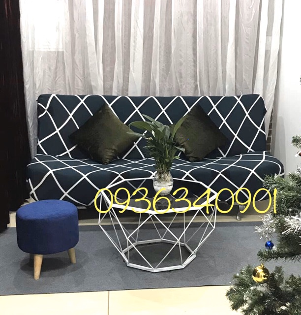 Bọc ghế sofa bed sofa giường hoạ tiết tam giác nền xám phá cách