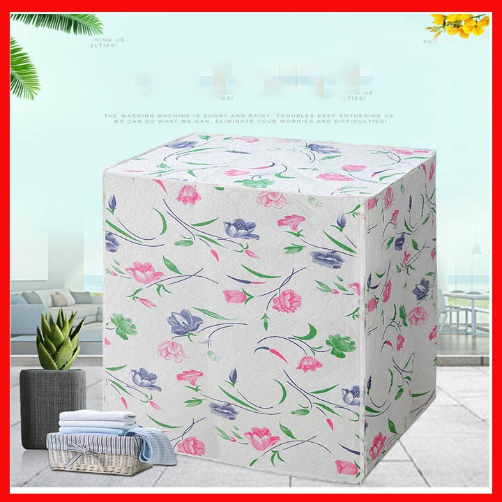 Áo trùm máy giặt loại dày với hoa văn trang nhã, màu sắc đẹp mắt, bảo vệ máy giặt khỏi bụi bặm, nước tạt, ẩm mốc.