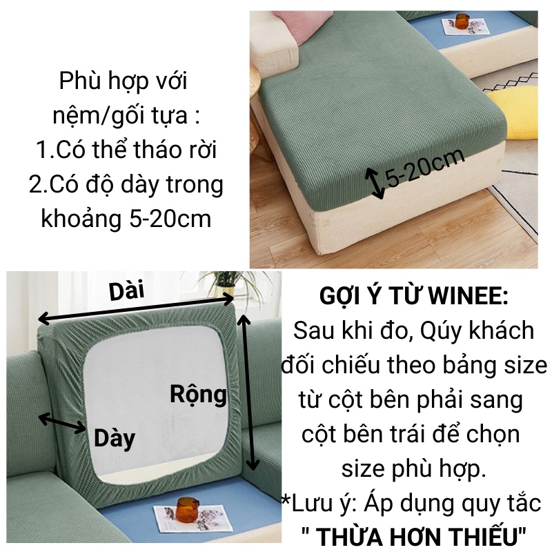 Tấm bọc nệm ngồi, nệm/gối tựa sofa vải nỉ nhung dày dặn mềm mịn