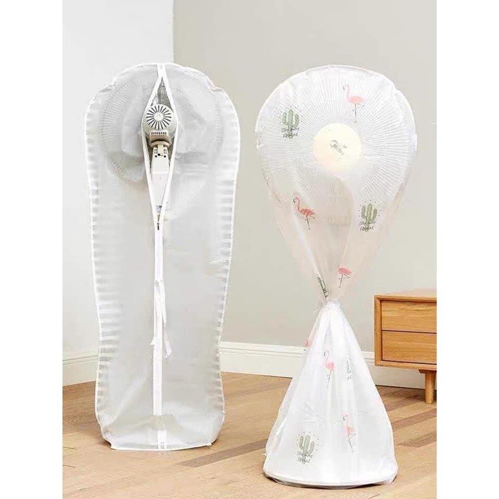 Bọc quạt cây chống bụi kích thước 60x48cm chất liệu peva chống thấm nước- Chuẩn bị đến mùa cất quạt rồi ý chị em, mà năm sau sầu nhất là vụ để quạt đó chả làm gì mà cánh quạt, lồng nhạt full bụi, bụi mờ mắt thậm chí mạng nhện giăng khắp lối luôn, bỏ ra lau thì cứ phải mất cả ngày cho 5,6 cái quạt.