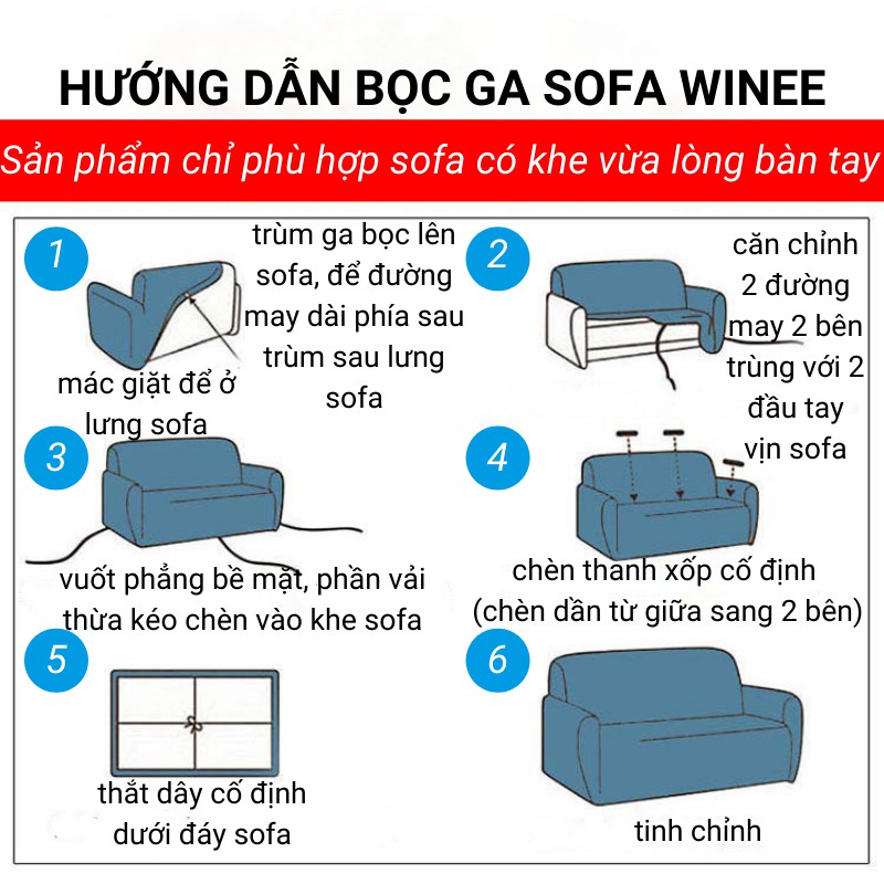 - Sản phẩm cũng như ga giường: trong quá trình sử dụng sẽ có sự xê dịch nhất định, cần thao tác chỉnh lại đôi chút. Để hạn chế Qúy khách có thể dùng ghim băng hoặc tham khảo sản phẩm ghim sofa dành riêng cho sofa vải.
