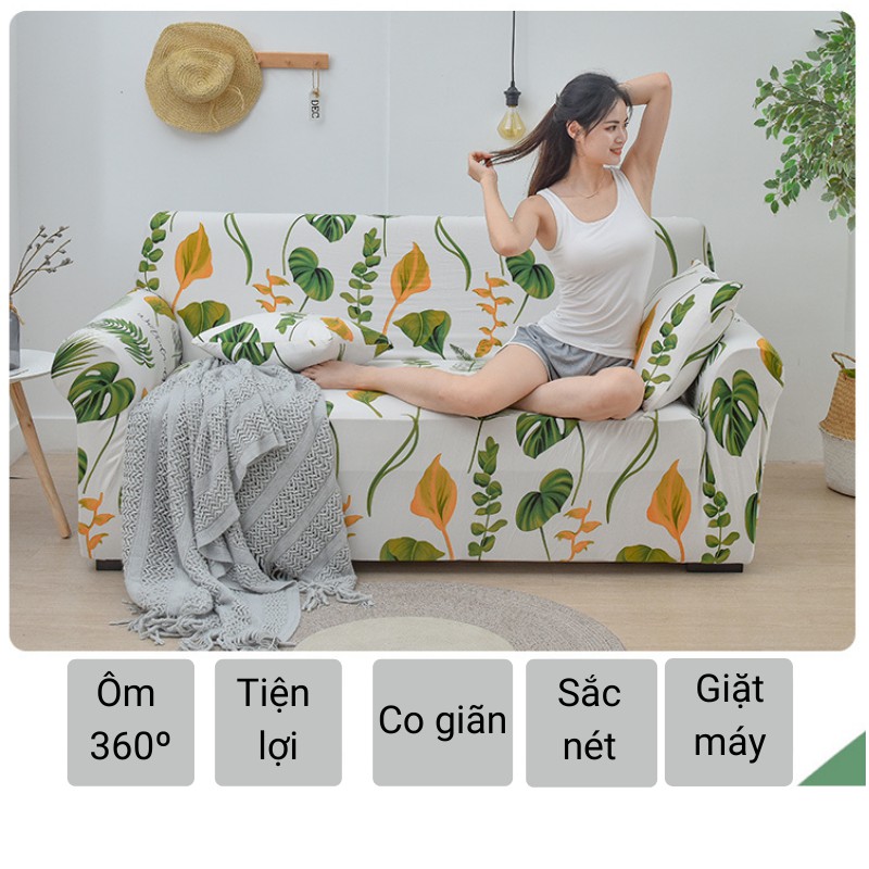 Bọc sofa bọc ghế sofa chữ L kèm hướng dẫn bọc vải thun sữa mềm mại co giãn tặng 1 vỏ gối