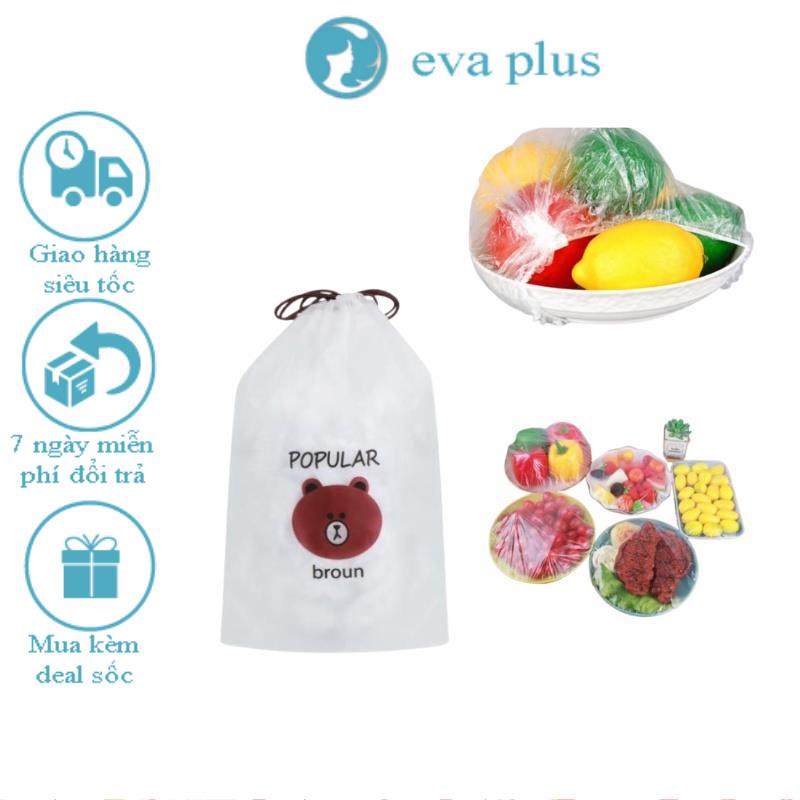 Giới thiệu Bọc Thực Phẩm Túi Gấu EVA PLUS Bọc Tthực Phẩm Đa Năng Có Chun Co Giãn Thông Minh 100 Cái