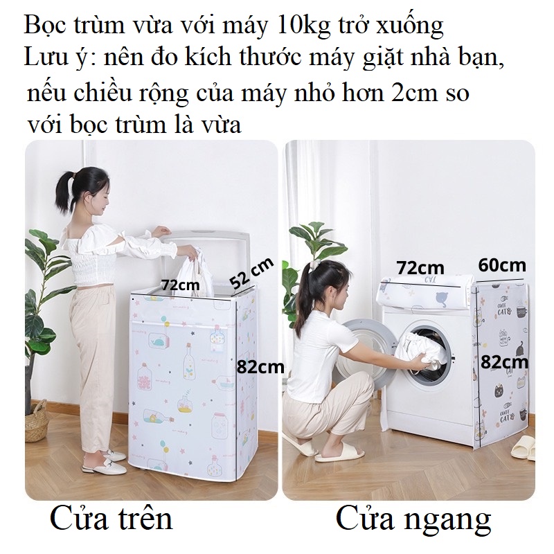 Bọc trùm máy giặt cửa trên, cửa ngang máy 10kg chống bụi, chống thấm che phủ tốt