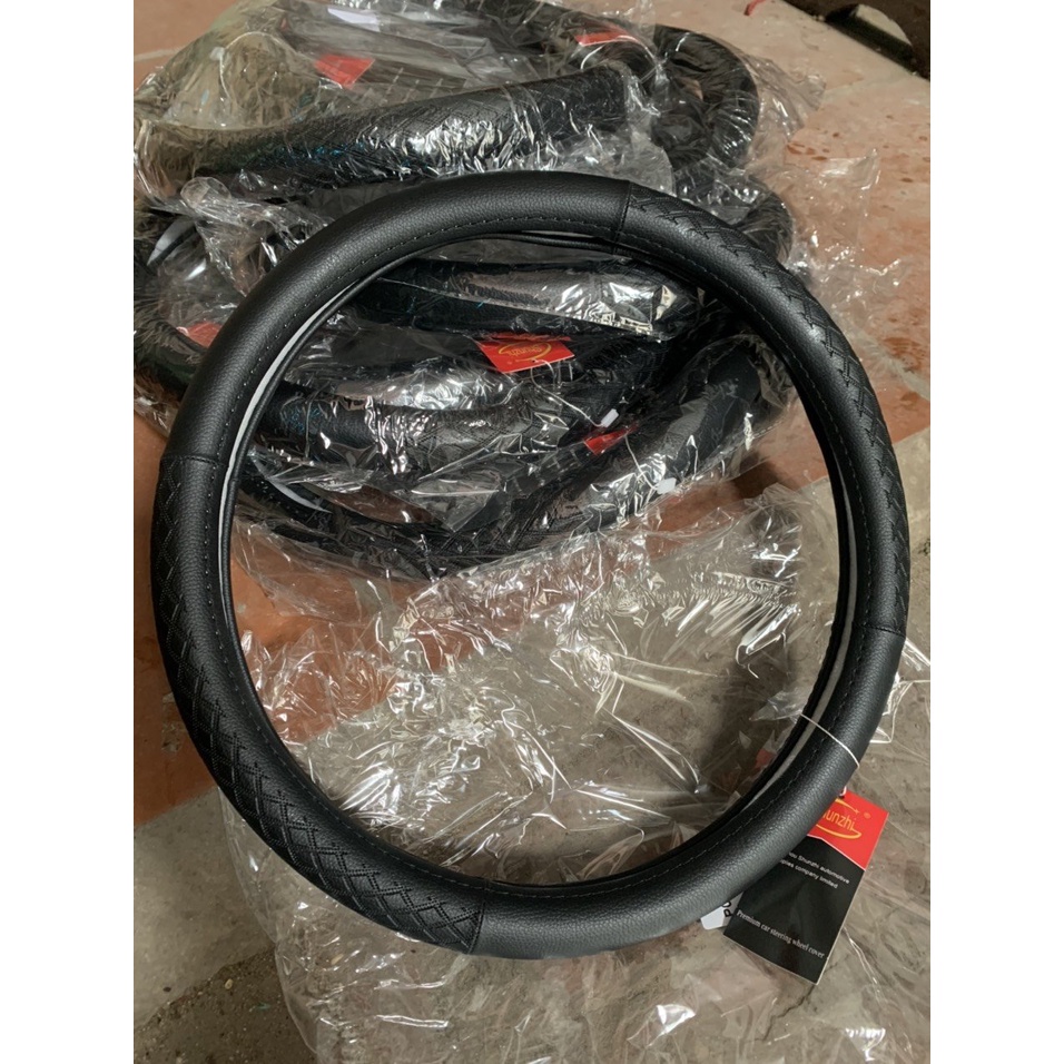 Bọc vô lăng bọc tay lái BU đen,chỉ đen size 38 cho ô tôChất liệu da dày dặn