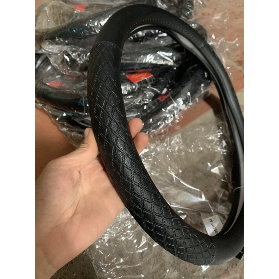 Bọc vô lăng bọc tay lái BU đen,chỉ đen size 38 cho ô tô