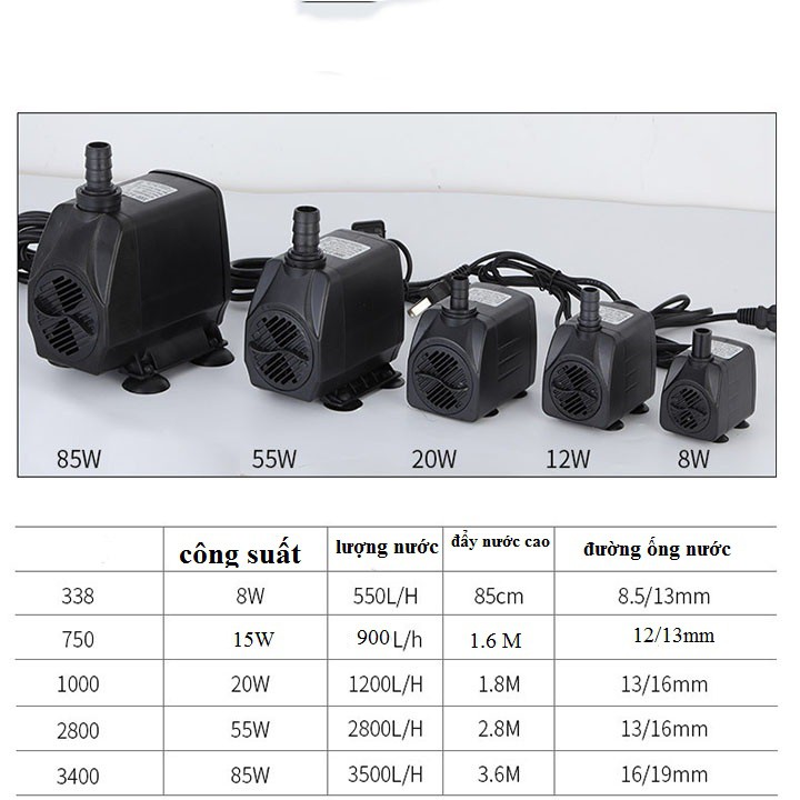 - Độ cao máy bơm có thể bơm tới khoảng 1,6m , tốc độ bơm 900 L/h .