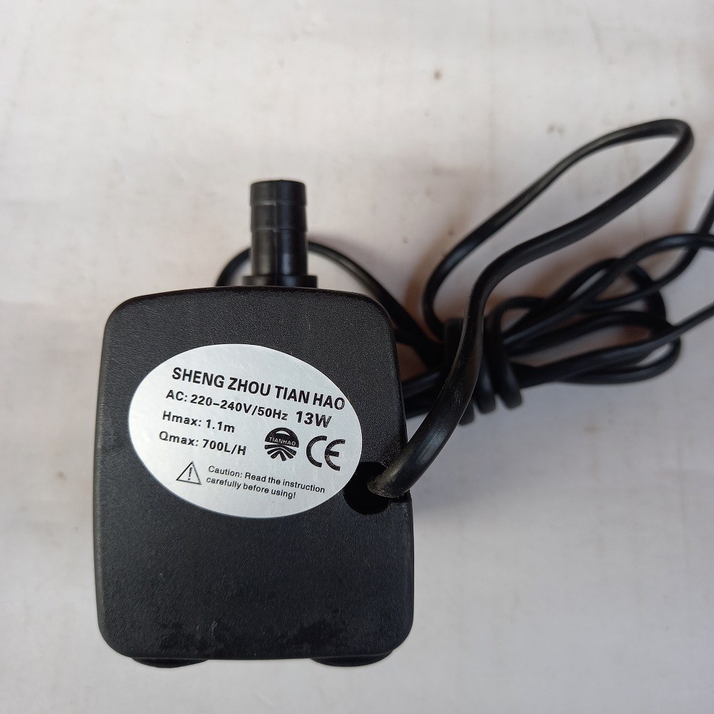 Công suất: 13W Đẩy cao: 1,1m ( với đầu ống Phi 12mm) Q max: 700 lít/h