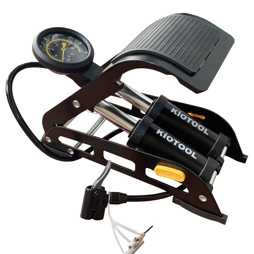 Bơm đạp chân xe đạp xe máy Kiotool 2 ống xilanh bền đẹpChất liệụ: khung kim loại