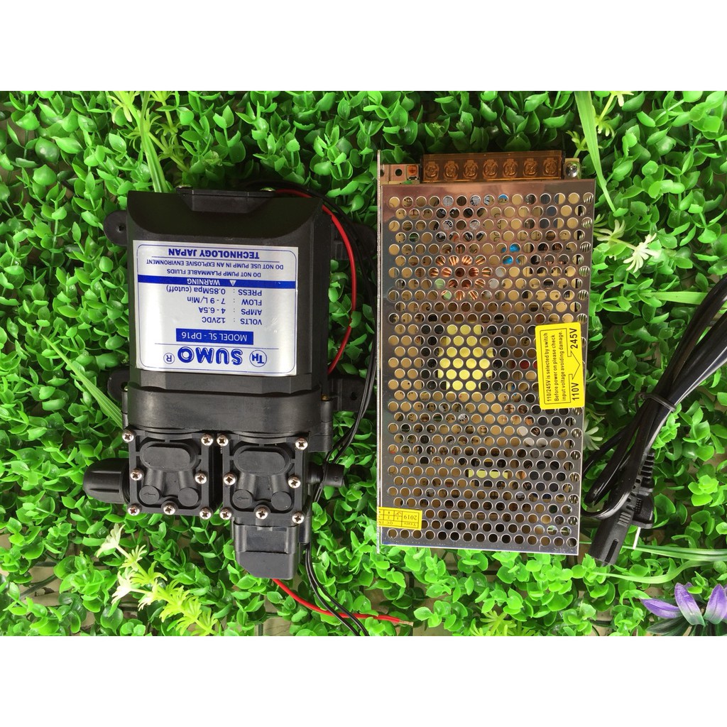 Bơm đôi SUMO tăng gấp đôi áp lực Lưu lượng nước 9L/phút Nguồn tổ ong 12V 10A Tặng chuyển ống ra phun sương