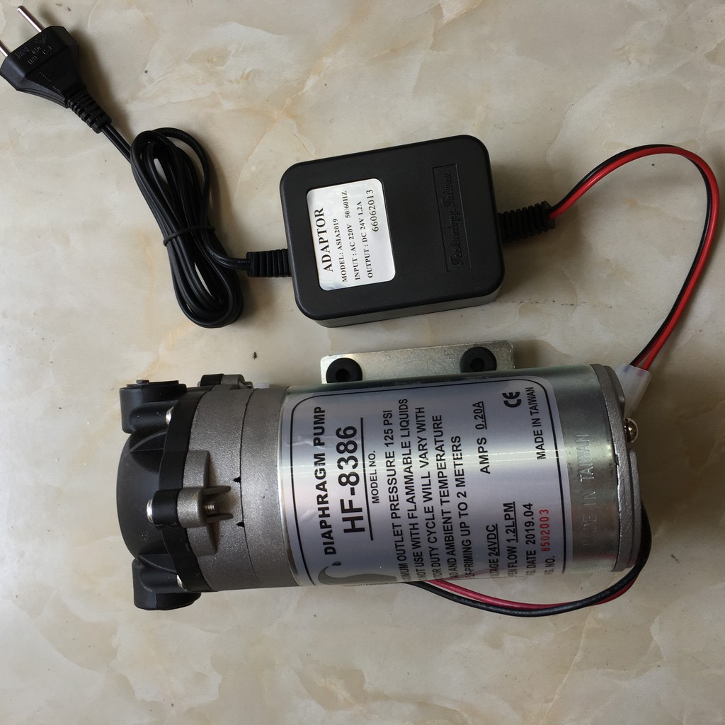 ảnh chup thậtMáy bơm là thiết bị cần thiết quan trọng cho máy lọc nước Ro , đây là loại bơm nén tạo áp lực đẩy qua màng lọc Ro. Máy bơm nén sử dụng cho máy lọc nước gia đình dùng loại 24V tạo ra áp suất lớn hơn 125Psi. Đây là dòng máy bơm dặc chủng riêng biệt sử dụng cho máy lọc nước.
