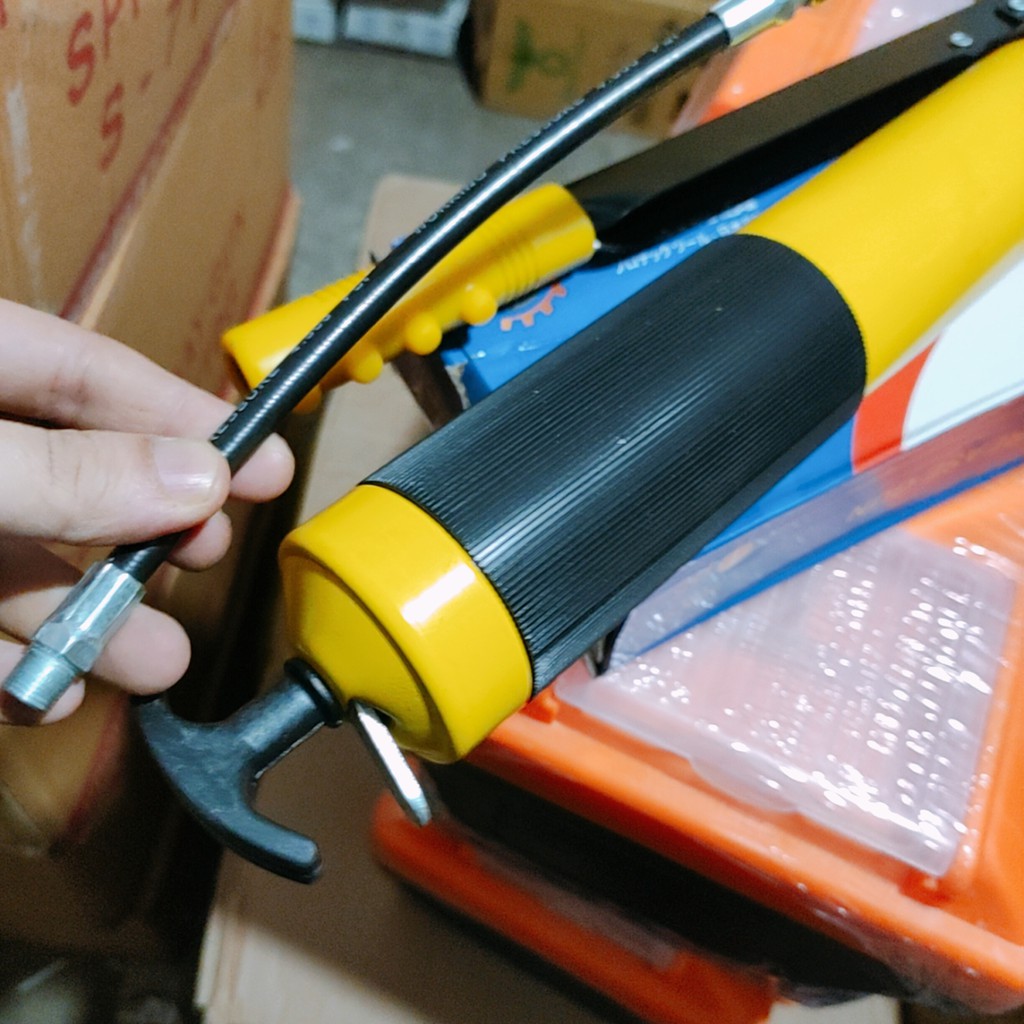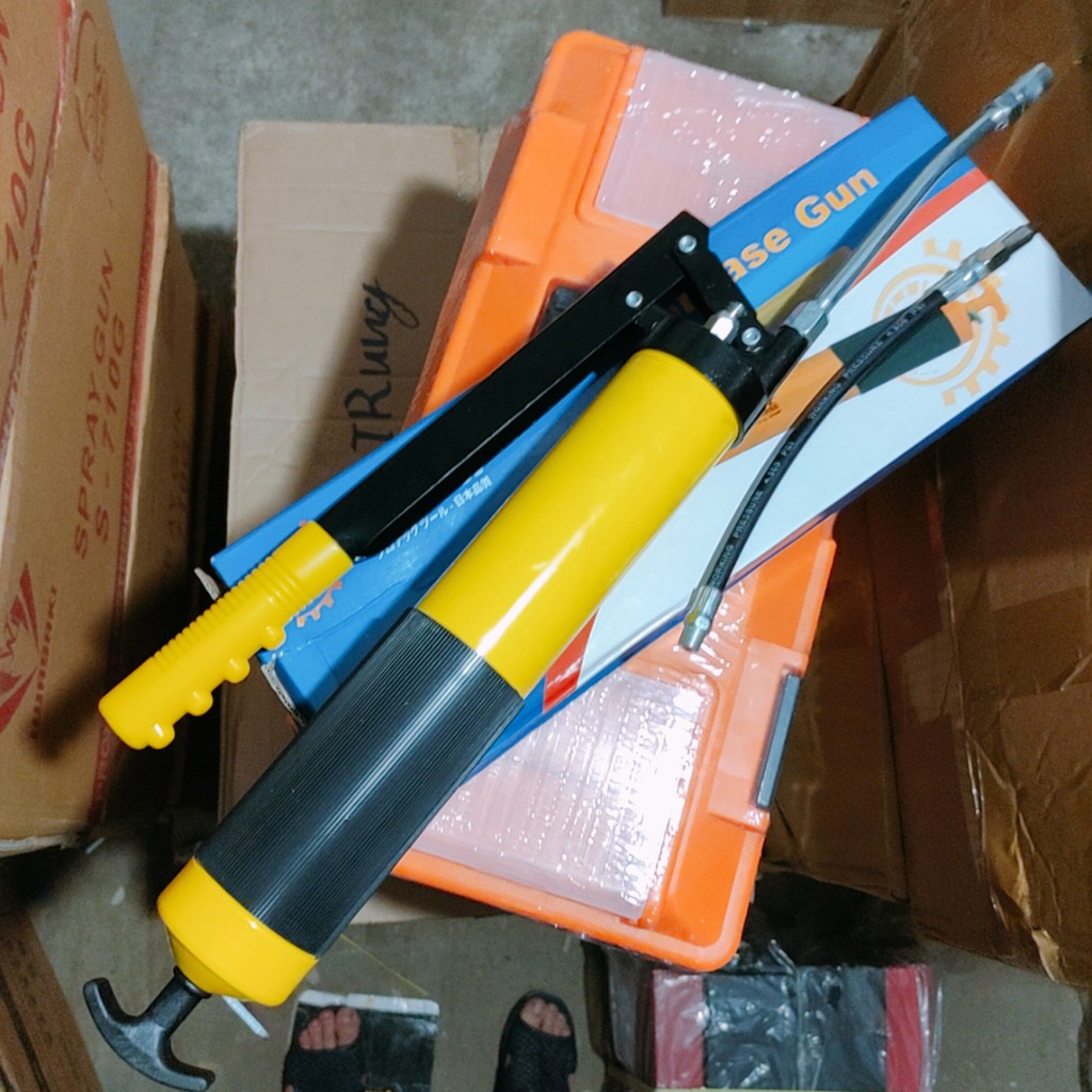 tay bơm mỡ đi kèm theo 1 đầu bơm kim loại, 1 đầu dây bơm cao su