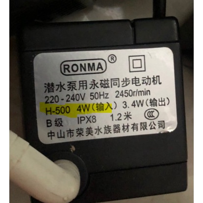 Nhà cửa & Đời sống > Dụng cụ & Thiết bị tiện ích > Máy bơm nước & phụ kiện || BƠM NƯỚC Ronma H-500 4W/220Vol cho QUẠT HƠI NƯỚC MIDEA có rắc cấm kèm theoCòn hàng