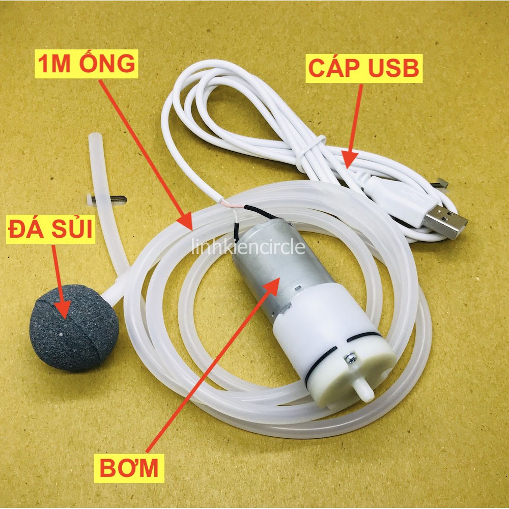 Bơm oxy mini chạy pin 3v - 6v kèm 1m ống đá sủi cáp USB dùng nguồn sạc dự phòng