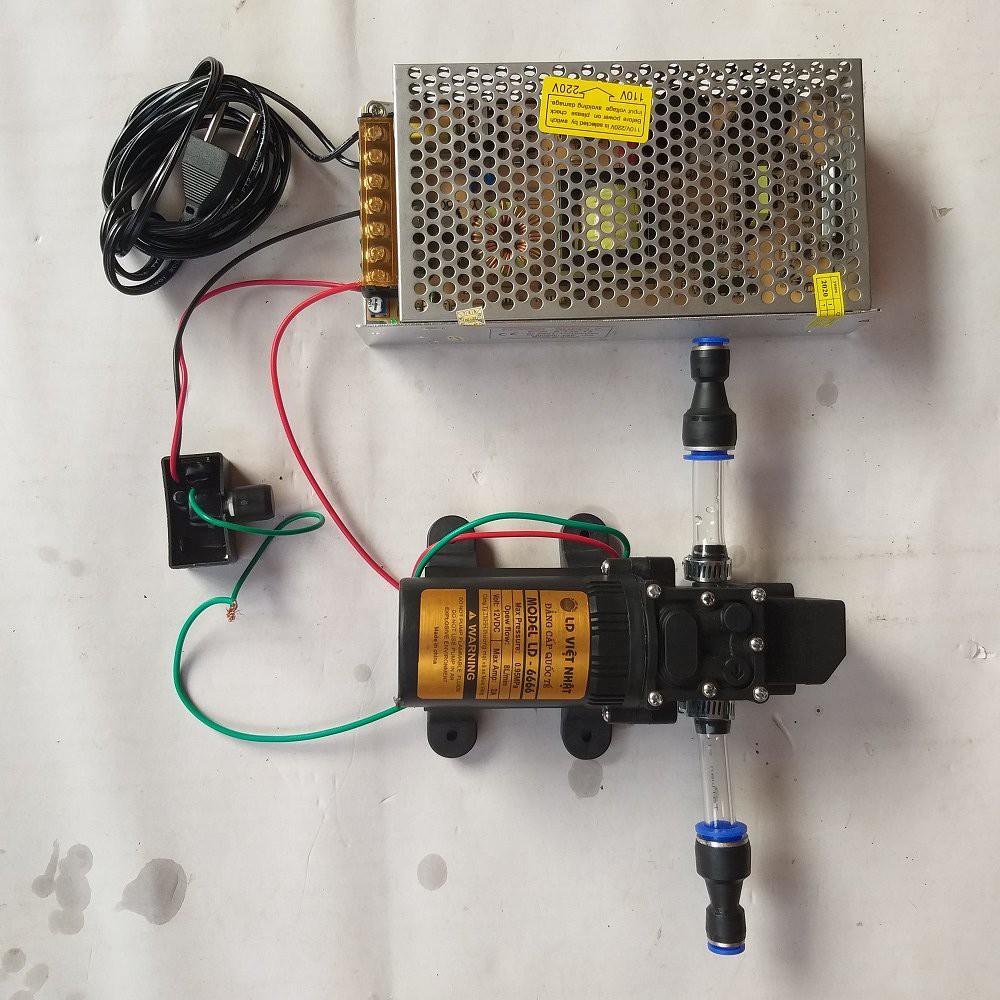 bơm phun sương - bơm tăng áp mini - máy bơm nước mini kèm (bơm 12v + nguồn 12v-10a+ chiết áp+ chuyển ông8)
