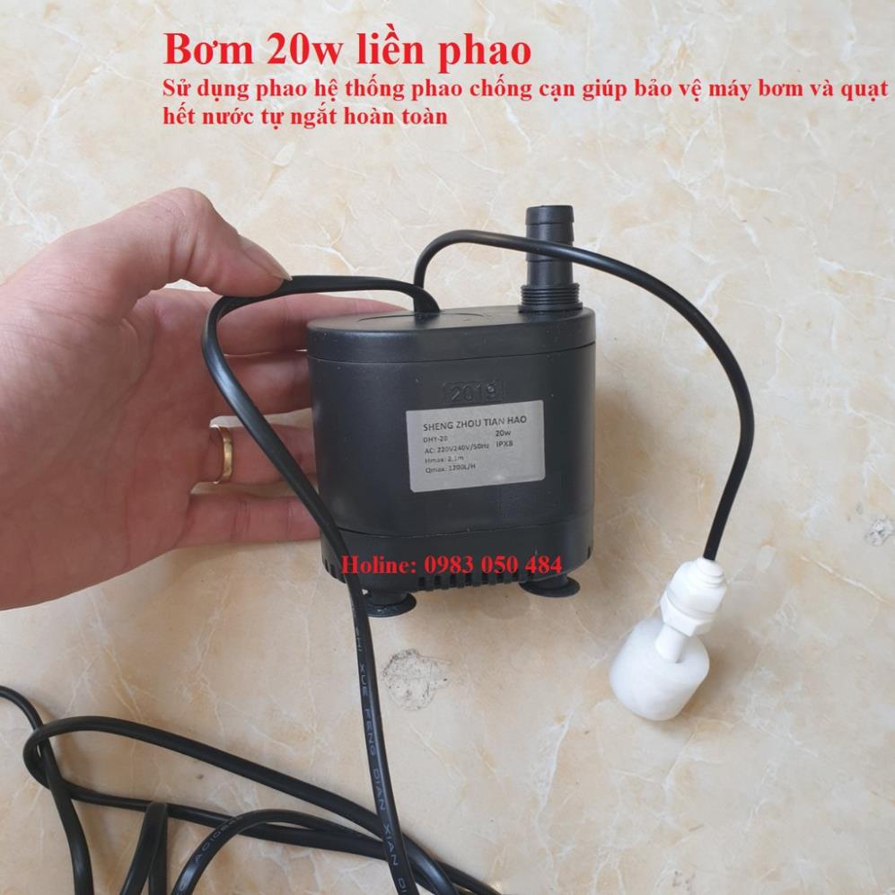 Bơm quạt liền phao chống cạn 20w bơm chìm hoàn toàn trong nước