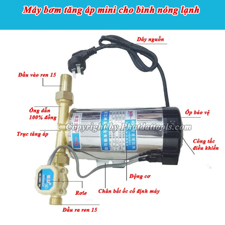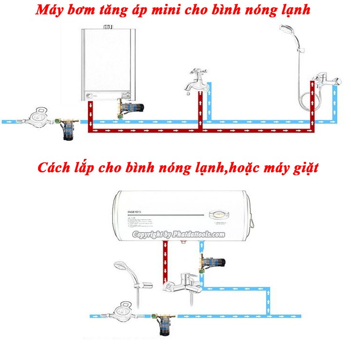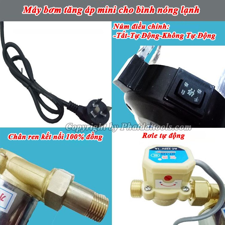 Bơm tăng áp mini cho máy giặt bình nóng lạnh máy bơm nước tăng áp tự ngắt bảo hành 6 tháng