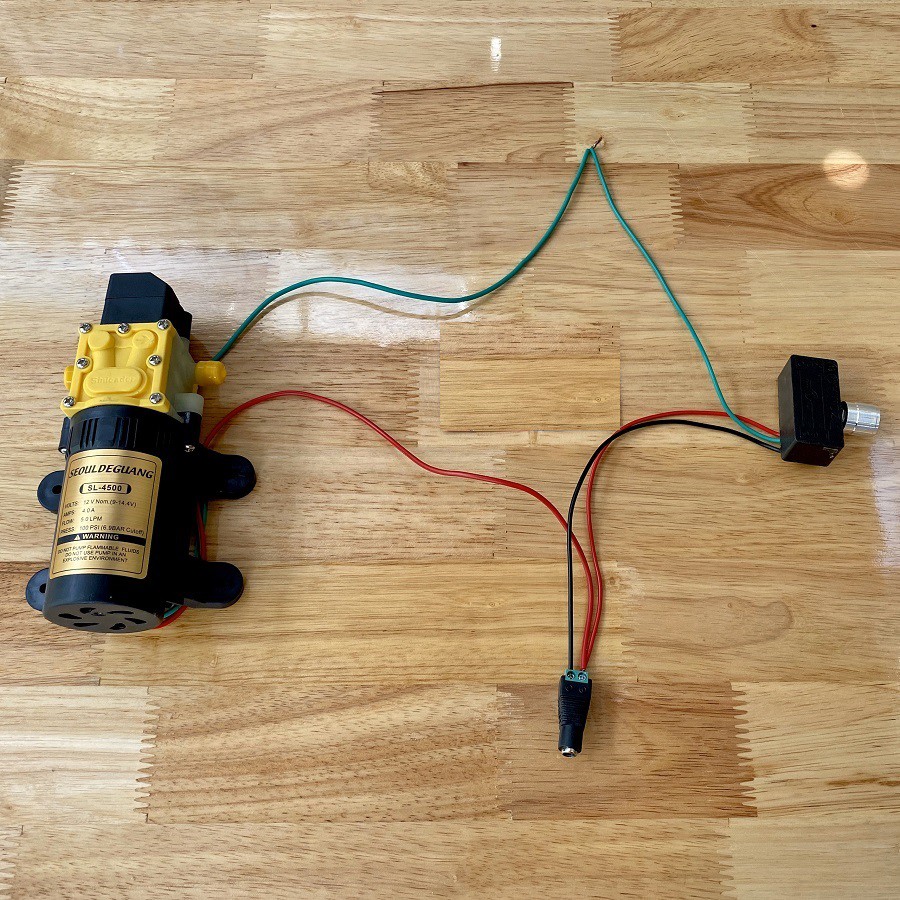 _ Bơm dùng nguồn điện 12v, có thể sử dụng điện ắc quy (bình điện) hoặc adapter từ nguồn 220v ra 12V - 5A