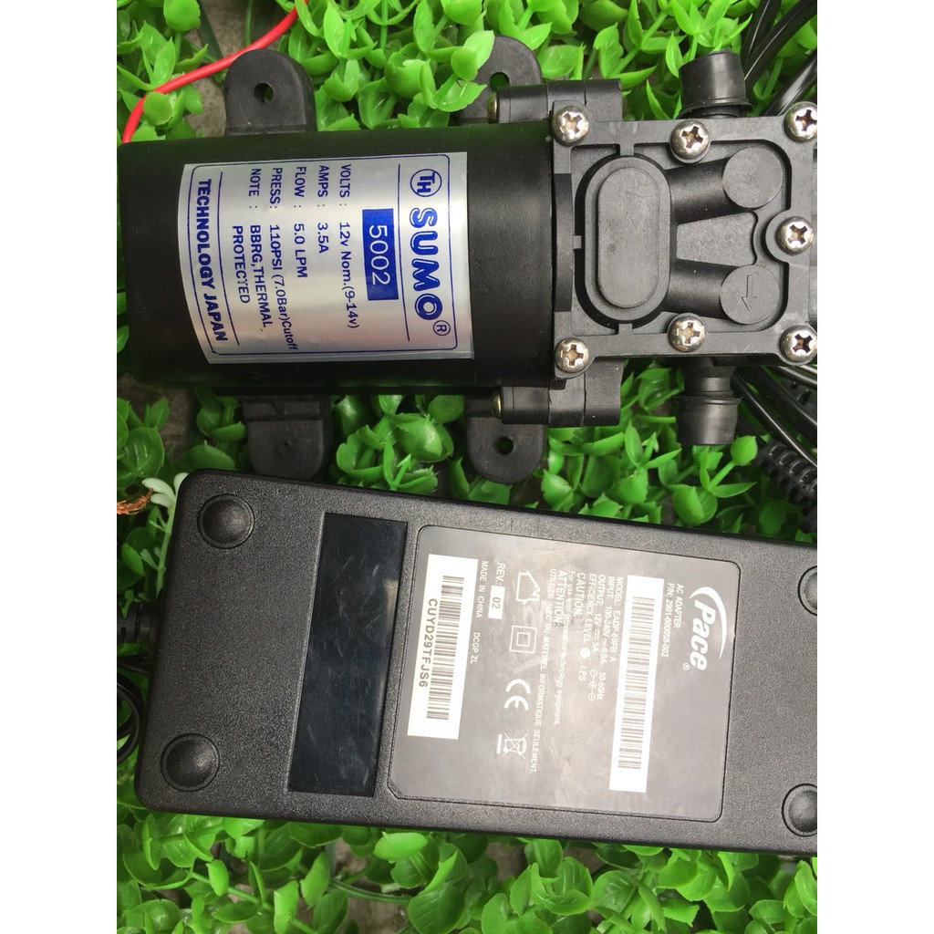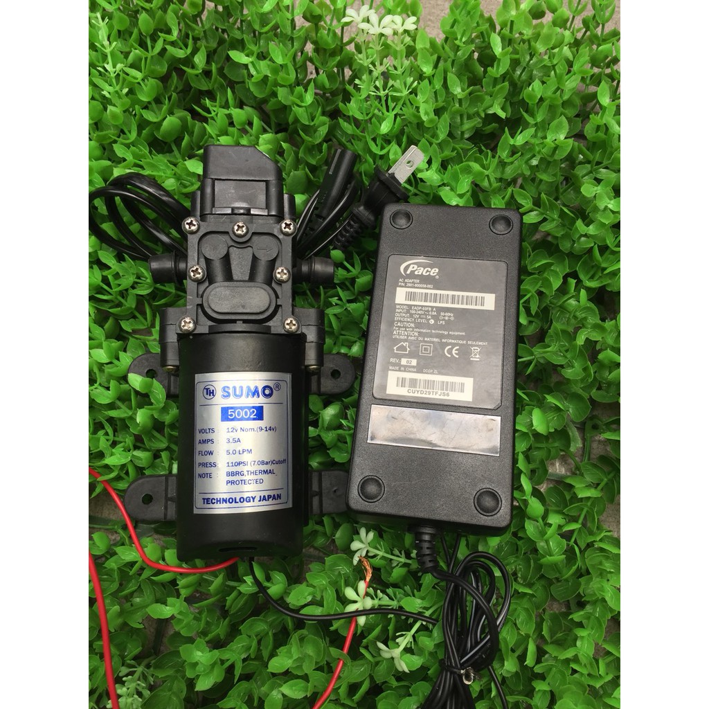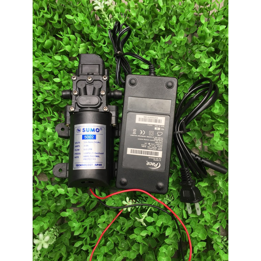 Bộ bơm tăng áp mini SUMO tự động ngắt và Adapter 12V5A Bơm công suất 60W lưu lượng 5L/ phút tưới cây phun sương rửa xe