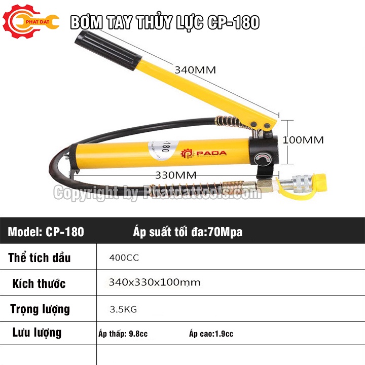 Bơm tay thủy lực PADA CP180 tay bơm thủy lực dùng cho kích con đội thủy lực bảo hành 6 tháng