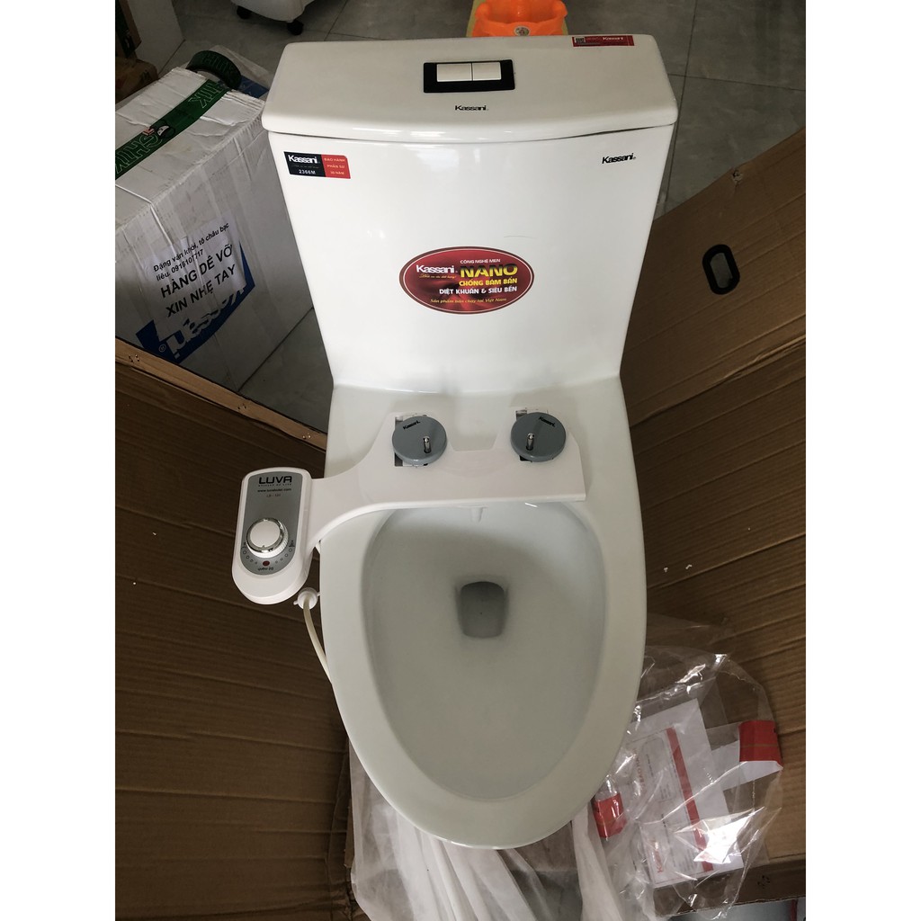 Nhà cửa & Đời sống > Đồ dùng phòng tắm > Bồn cầu, ghế và nắp bồn cầu || Bồn Cầu 1 Khối Kassani Thái Lan 2366 Men Nano Xảy Xoáy 2 lớp kết hợp xả đẩy MEN NANO LOẠI 1Còn hàng