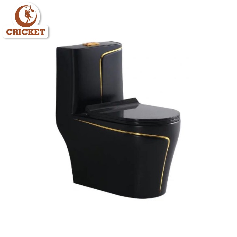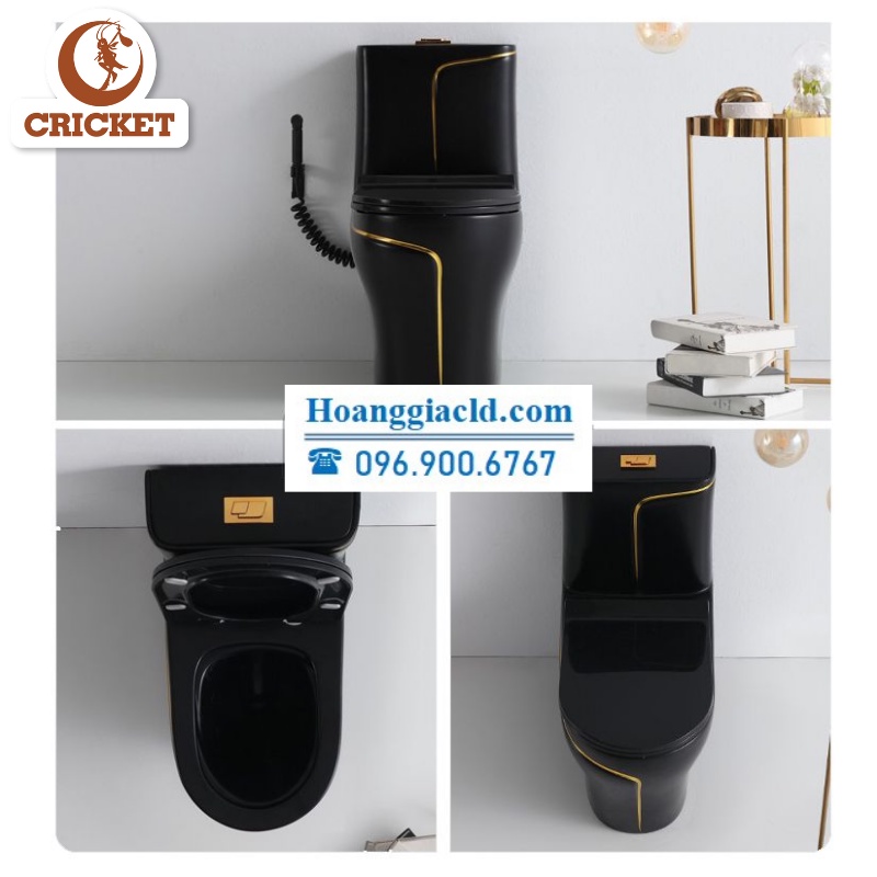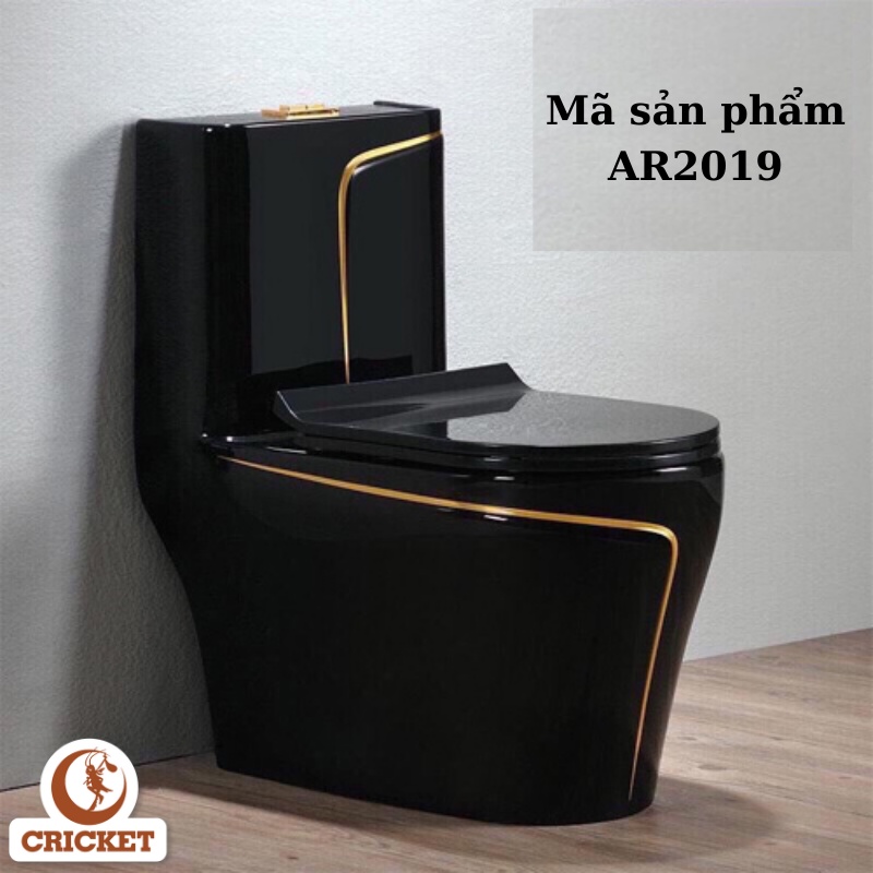 Nhà cửa & Đời sống > Đồ dùng phòng tắm > Bồn cầu, ghế và nắp bồn cầu || Bồn cầu 1 khối màu đen kết hợp viền vàng cổ điển ARINO (AR2019) - Nội thất phòng tắm sang trọng và nghệ thuậtCòn hàng