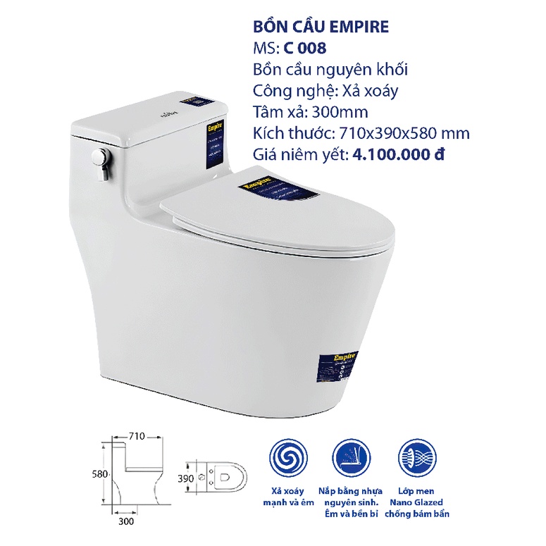 Thương hiệu: EMPIRE | Xem thêm các sản phẩm Bồn cầu của EMPIREMô tả ngắn
